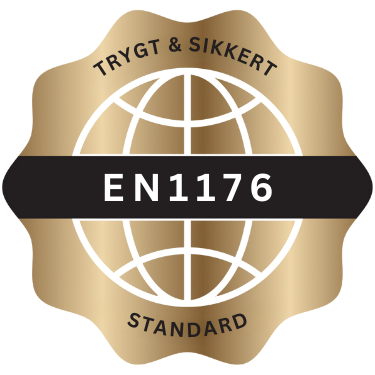 Alle våre produkter er sertifisert etter de strengeste sikkerhetsstandardene i Europa (EN1176), slik at både barn og foresatte kan føle seg trygge. Vi er opptatt av at barna kan leke fritt og sikkert på våre apparater.