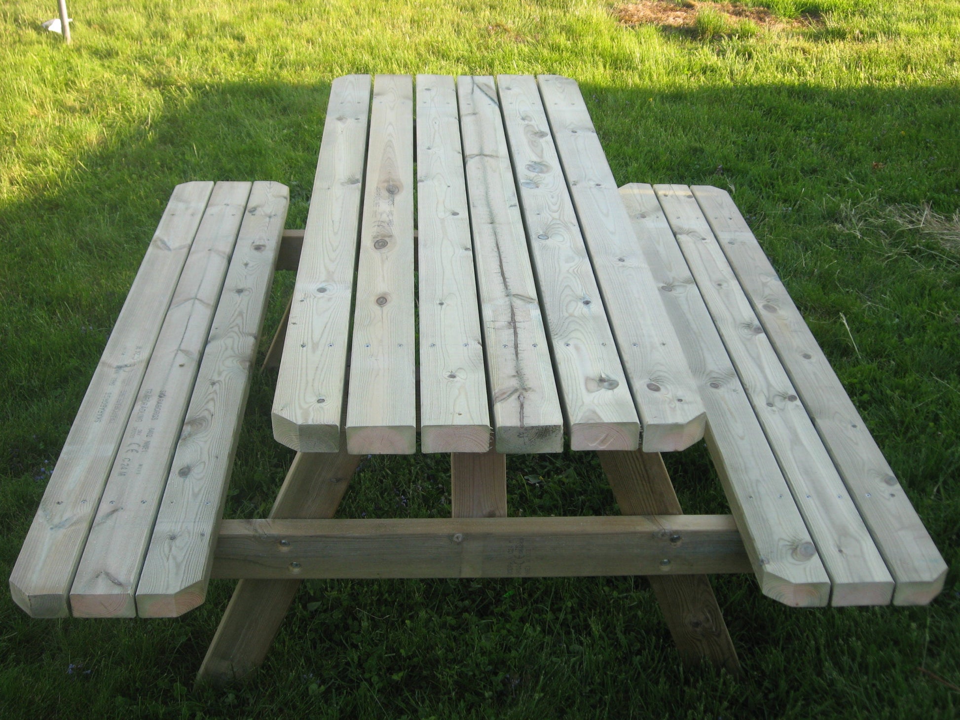 I trykkimpregnert treverk.Hele benken er laget i 2" 4". (48*98).
