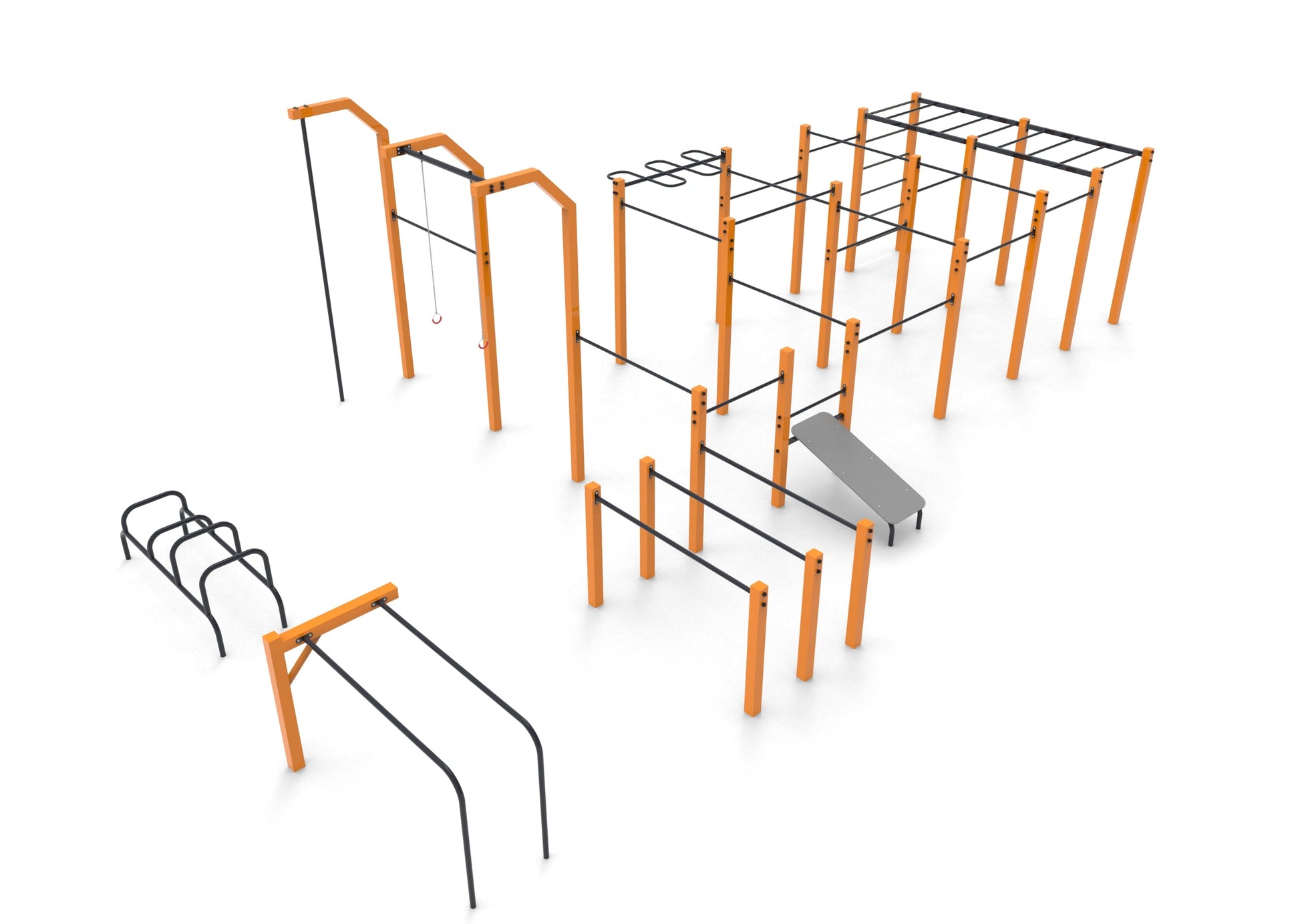 Street workout er en kul serie for utendørs trening. I denne serien er det ferdig laget sett som passer til det vanlig trening og parkour trening. Dette settet er stort og har det som skal til for å trene skikkelig.